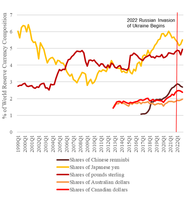 Central Bank Foreign Exchange Reserve Shares By Currency For Non-Traditional Reserve Currencies (1999-2022)