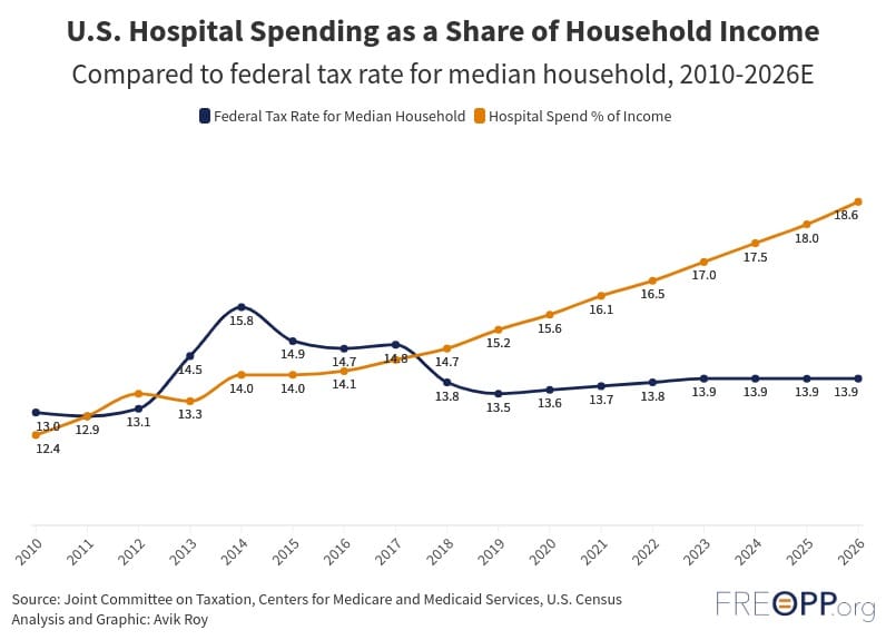 Hospital care is a driving force behind skyrocketing health care costs across the nation, including here in Texas. Hospital bills are so high that the average American family now pays more to hospitals than they pay in federal income and payroll taxes.